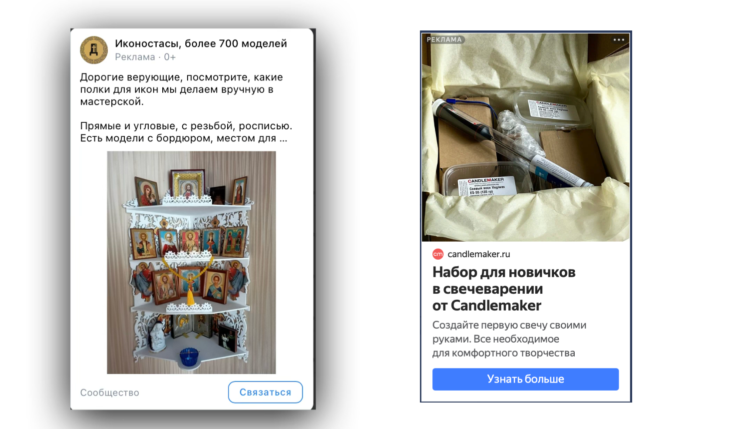 Так, в примере про полки для икон выше было обращение к верующим.
