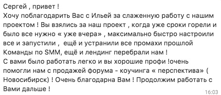 Отзыв от Надежды Тихоновой, организатора мероприятия: